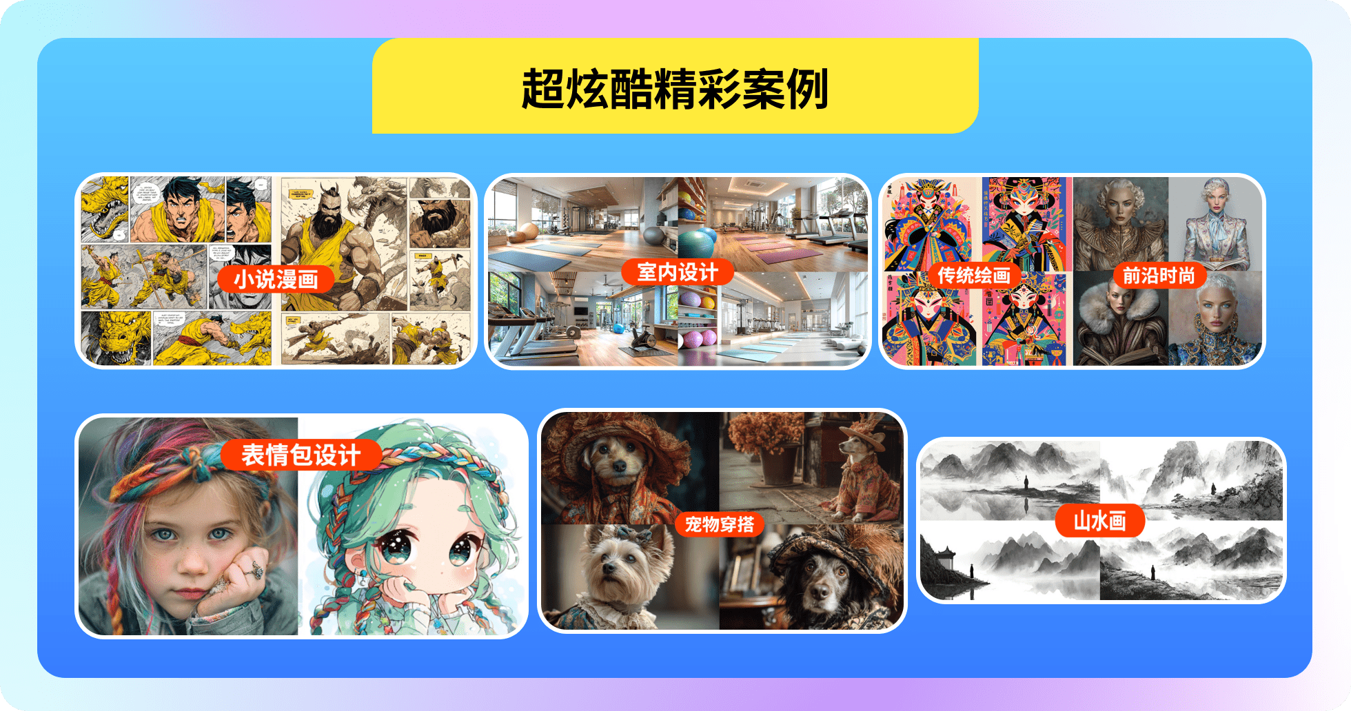 本章展示Midjourney在多个创意领域的应用案例,包括真人改卡通动漫风格、线稿转实拍图的古代人物还原、AI复原古诗意境、虚拟造型变换、品牌IP打造、电影海报风格创作、UI图标设计以及建筑设计等。通过这些案例,用户将看到Midjourney在不同领域的强大功能和创意潜力。