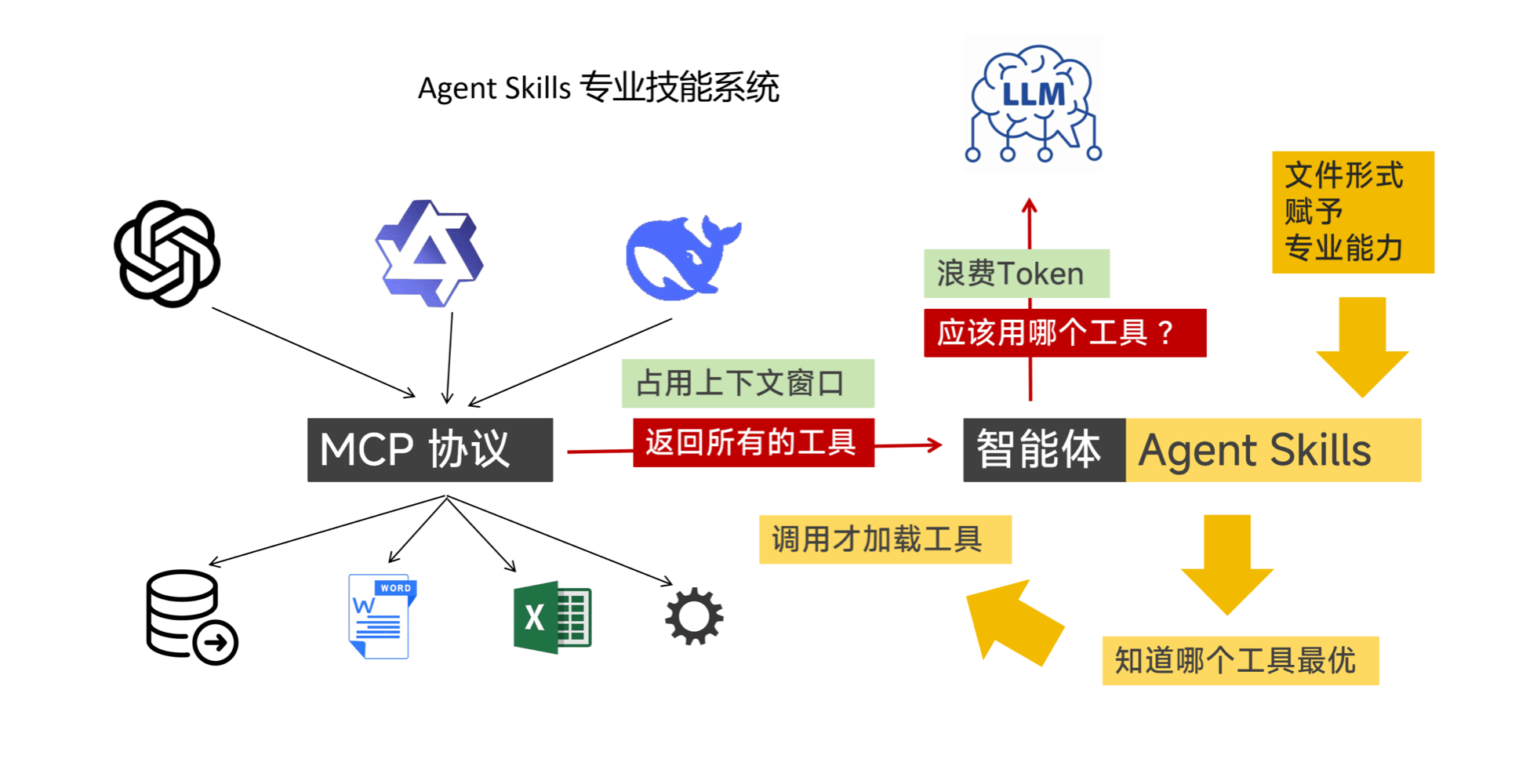 告别单靠模型 “空想” 的时代!MCP(外部工具调用协议)+ Skills(专属技能库),为 Agent 装上两大核心引擎,MCP拓展能力边界,Skills夯实专业深度,双轮齐转之下,Agent 既能跨界解决复杂任务,又能在垂直领域做到极致靠谱,真正实现从 “能干活” 到 “干好活” 的飞跃!